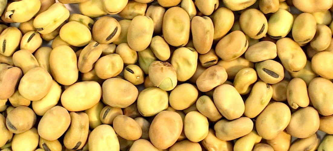 Faba beans are large legumes used in a variety of dishes and animal feed. They are high in protein and widely cultivated.